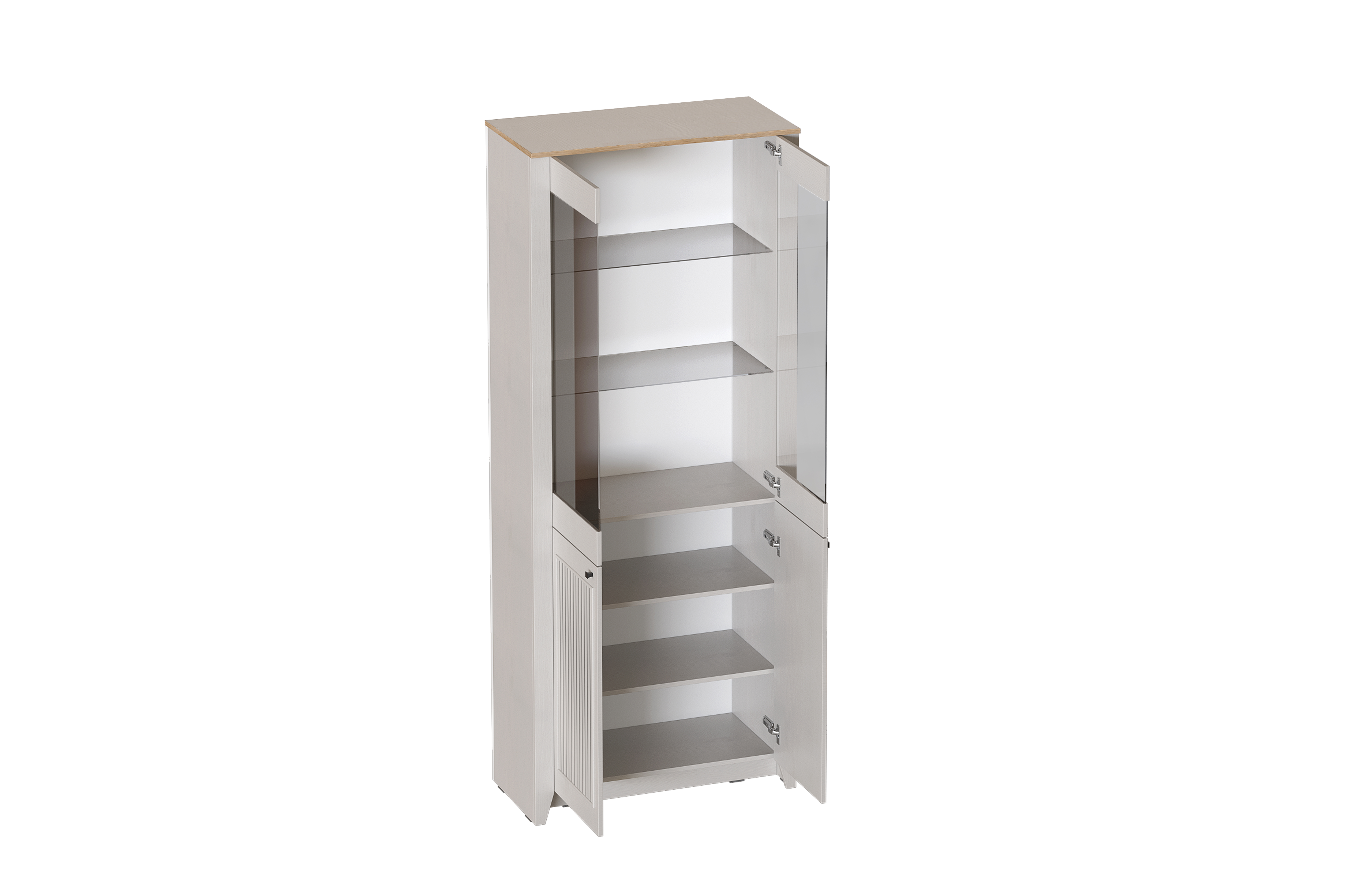 Шкаф-витрина двухдверный "Валенсия" выполнен в комбинации Дуб натуральный светлый / Персидский жемчуг. Внутреннее пространство шкафа представляет собой два отделения. Нижнее пространство включает в себя съемные полки. Верхнее отделение со стеклянными полками. Петли без амортизаторов. Шкаф выполнен из безопасных, качественных материалов, что гарантирует долговечность и сохранение первоначального вида на протяжении долгого времени.
