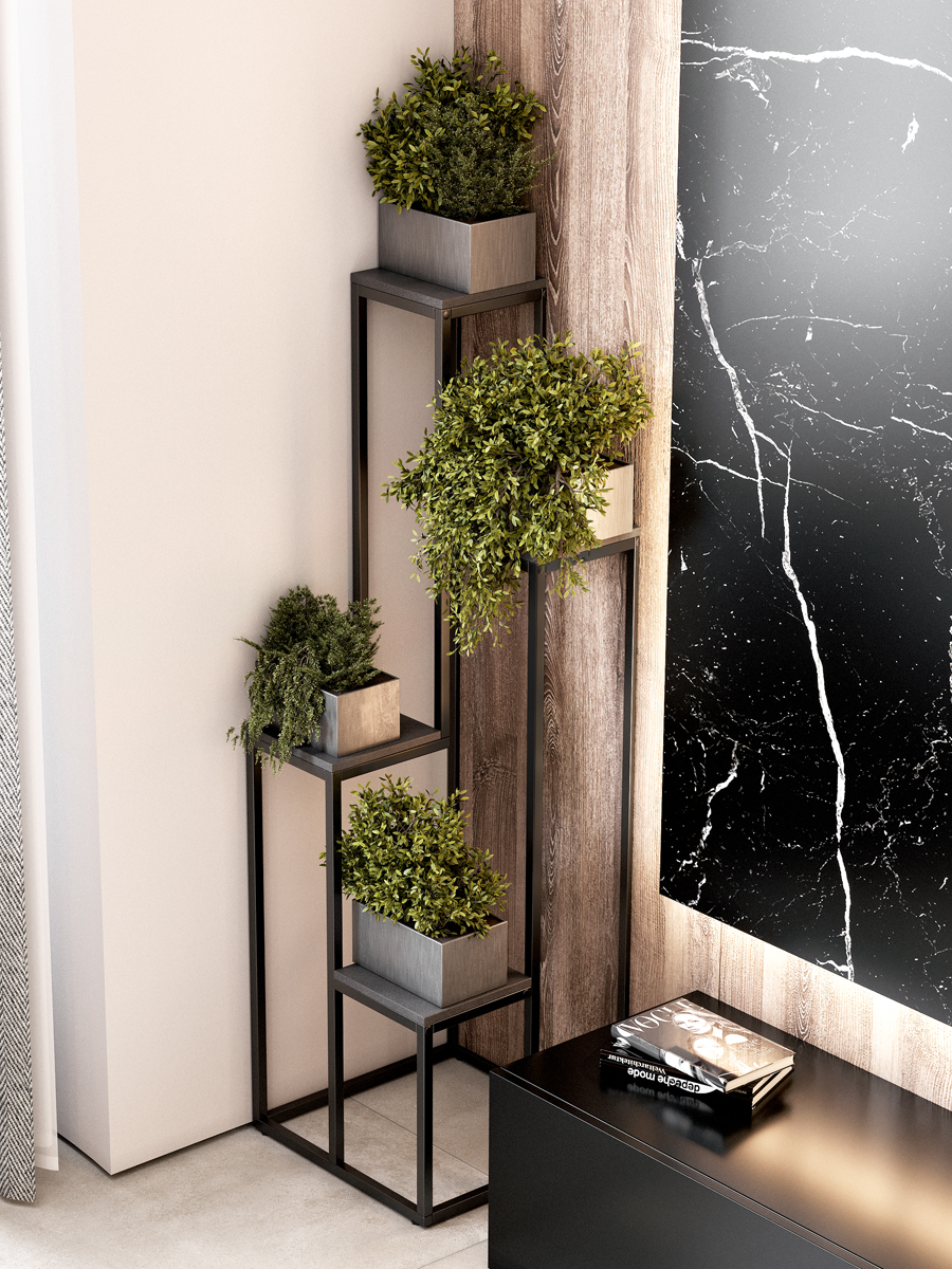 Полки выполнены в цвете Металл Бруклин, а металлокаркас в черном.