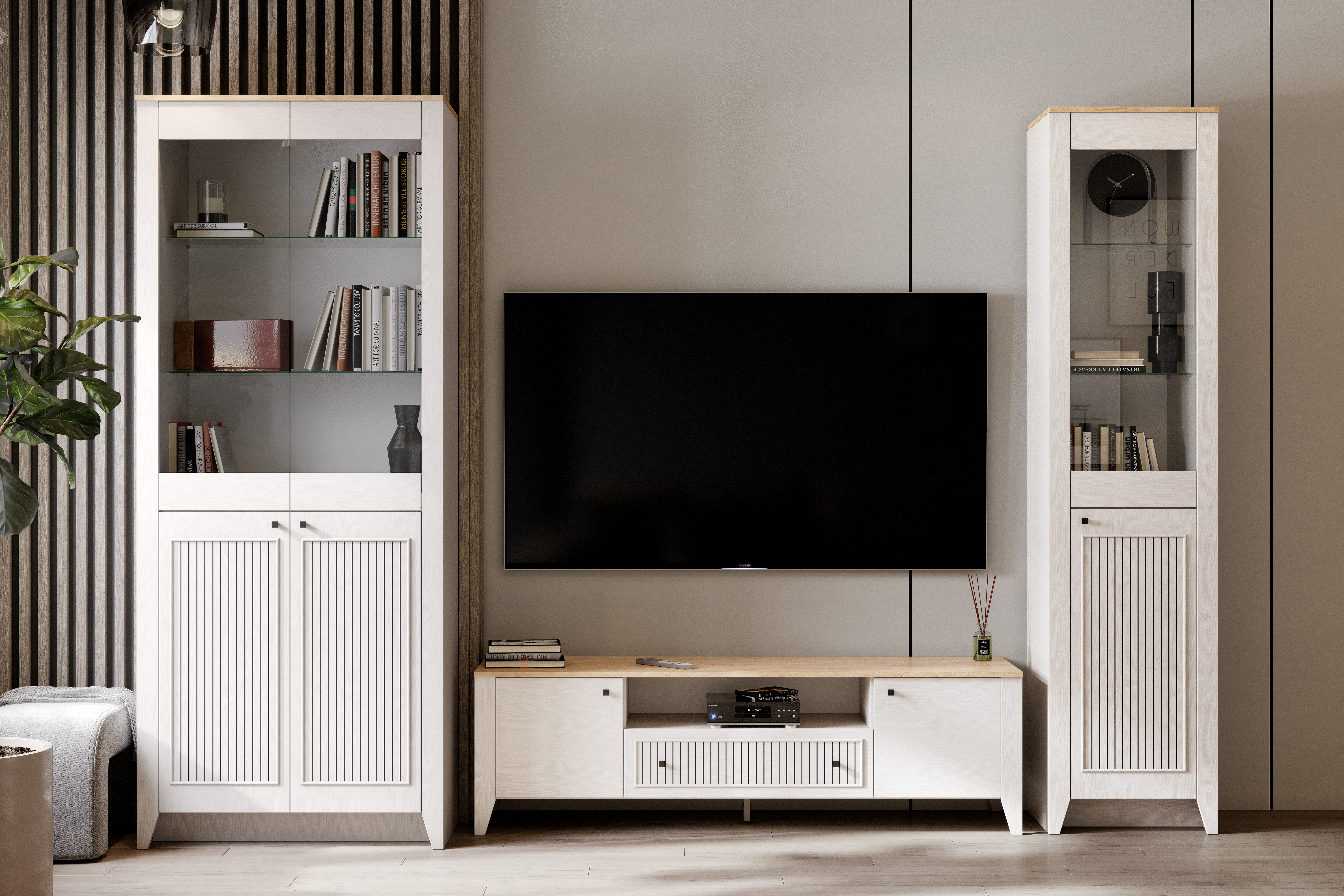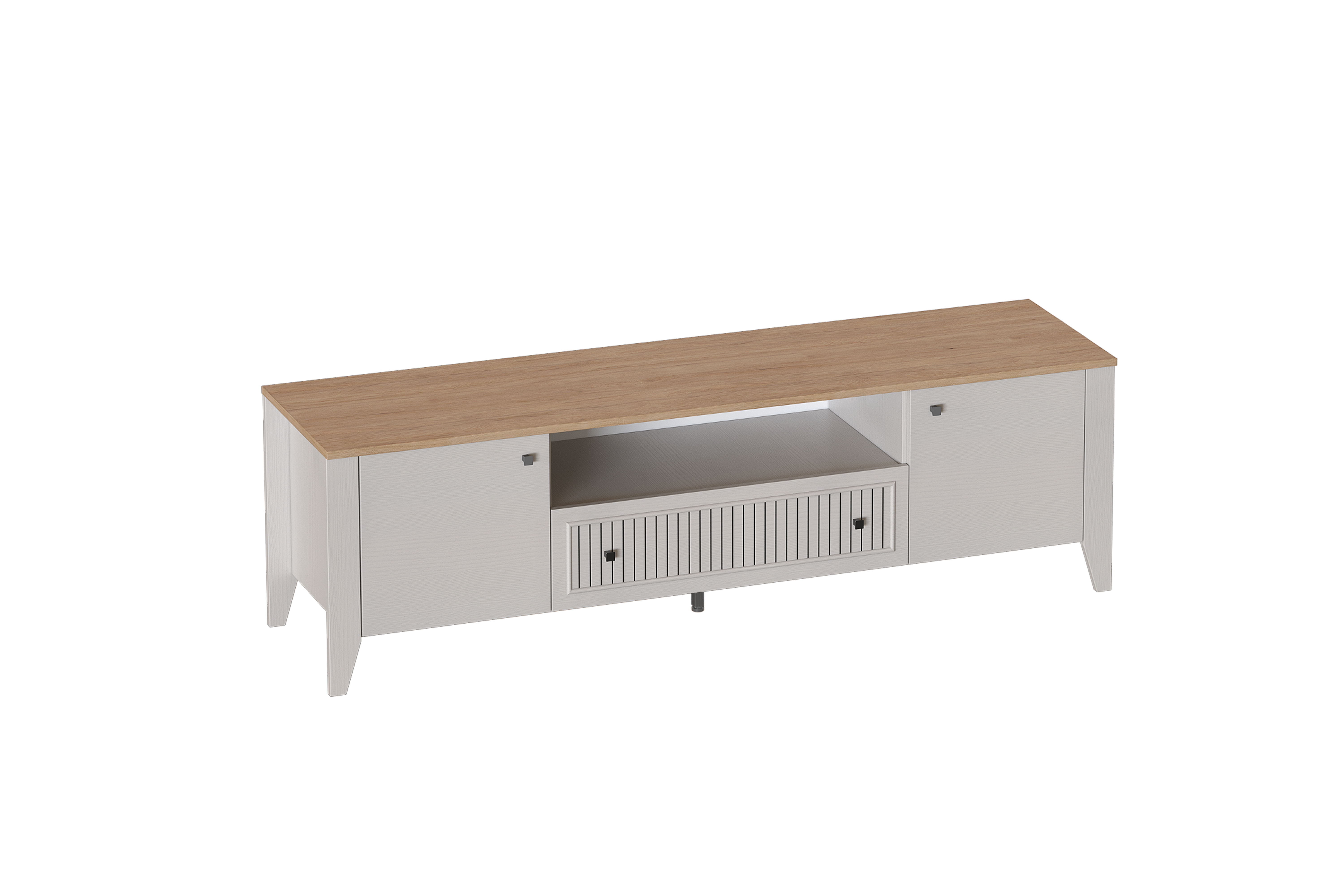 Тумба ТВ "Валенсия" выполнена в комбинации Дуб натуральный светлый / Персидский жемчуг и оснащена одним ящиком на шариковых направляющих (без амортизаторов). . Она выполнен из безопасных, качественных материалов, что гарантирует долговечность и сохранение первоначального вида на протяжении долгого времени.